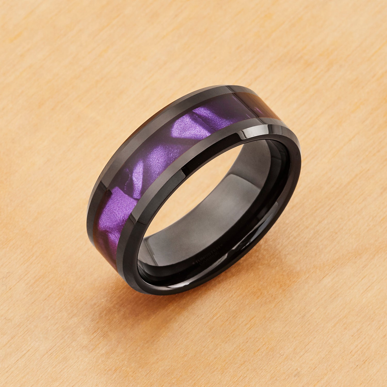 TI040 - Black IP Titanium 8mm Wedding Band Full Sided Black CZ Matte Brushed