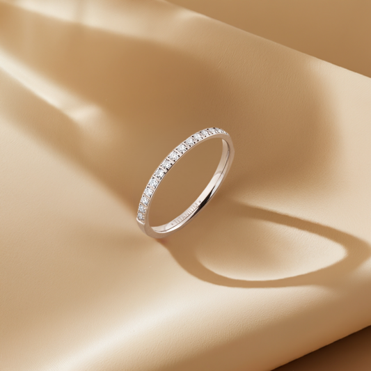 TI010 - Rhodium IP Titanium 2mm Wedding Band Half Eternity White CZ